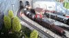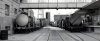 Dans un tout autre ordre d'idée, ceci dans le but évident d'éviter toute monotonie, il est souhaitable de parfois procéder à des changements au niveau du matériel roulant désigné à être exploité sur un réseau, lorsque celui-ci, pour des raisons évidentes de place, ne peut pas être entièrement et simultanément utilisé. Fort de cet argument, j'ai donc remplacé le train de marchandises avec service voyageurs (GmP) historique "10264" par un train-bloc de wagons-citernes à deux essieux, destinés au transport d'hydrocarbures, en veillant scrupuleusement à respecter l'esprit du temps jadis, ceci en composant une rame dont chaque wagon est différent, donc aisément reconnaissable au niveau du pays européen auquel il appartient. Ces wagons sont munis soit de la passerelle ouverte, soit de la typique vigie de garde-frein) ; dans la réalité, cette situation pouvait encore quotidiennement se rencontrer jusque dans les années 1970, voire même 1980 dans certains cas, notamment au niveau des wagons transportant des liquides chimiques, époque où les wagons-citernes étaient encore majoritairement munis de deux essieux et dont la contenance variait en 20'000 et 40'000 litres.