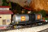 Par contre, malgré toutes mes recherches tous azimuts, je n'ai pas été en mesure de découvrir une illustration officielle de RIVAROSSI, représentant ce wagon-citerne à quatre essieux "ESSO STANDARD"; seule existe une reproduction imagée du wagon-citerne à deux essieux de cette marque (il faut peut-être admettre que ce wagon n'ait été produit qu'à très peu d'exemplaires, donc soit extrêmement rare). En effet, le seul wagon-citerne à quatre essieux, que RIVAROSSI ait reproduit dans le même style que celui en ma possession, est le SHELL, lui également apparaissant dans une splendeur optimale; j'espère, qu'un jour, je serai également en mesure d'acquérir un tel wagon. A titre "prémonitoire", une photographie de celui-ci apparaît à la suite du wagon "ESSO STANDARD".