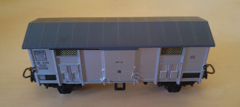 Nouvelle construction d'un wagon couvert FS rouge-brun, puis d'un deuxième wagon couvert FS gris