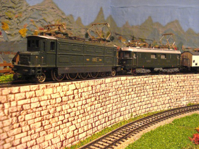 Double traction Ae 4/7 10901 de HAG et Re 4/4 I 427 de Märklin en tęte d'un lourd international
